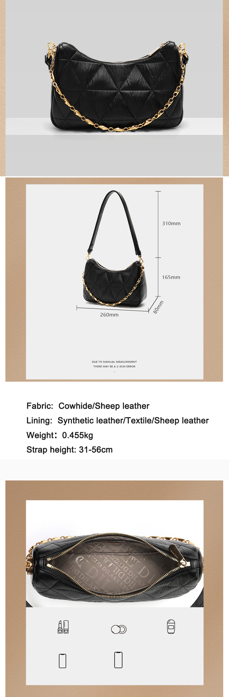 Real leather women's bag crossbody bag fashionable sheepskin armpit bag women's crescent bag